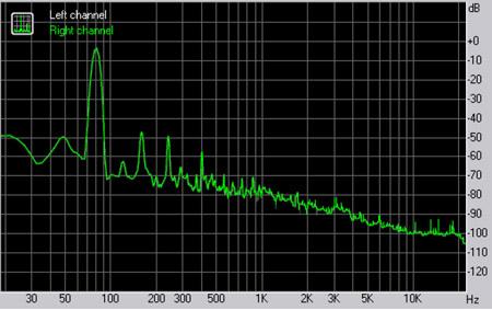 Тестовый сигнал 80 Гц: КГИ 0,8% КГИ+шум 1,3%