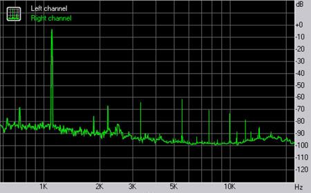 Тестовый сигнал 1100 Гц: КГИ 0,2% КГИ+шум 3,0%